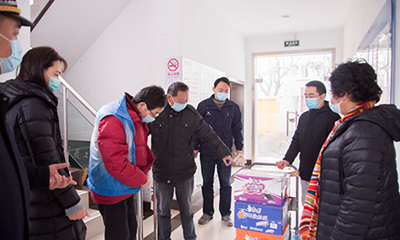随后,我院党支部书记在场中路社区党支部书记社区的带领下,慰问社区孤寡老人,询问老人们的身体情况,为受疫情影响的基层困难群众排忧解难。