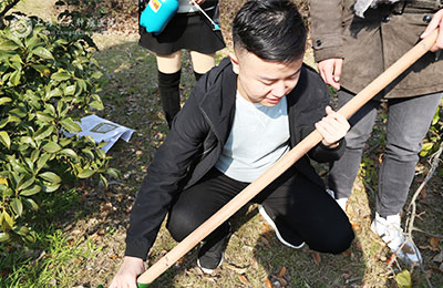 为了让树苗能够更好地吸收营养,负责拔除杂草的同志们如火如荼的卖力劳动着。不顾被汗水打湿的冬装,划伤的手指,沾了泥土的衣服,完全忘记了时间。后,大家看着自己的劳动成果——一颗颗挺拔而立的树苗时,脸上都露出了心满意足的笑容,因为大家深知这些树苗象征着新的生命,新的希望,也带着自己为患者衷心的祈福。