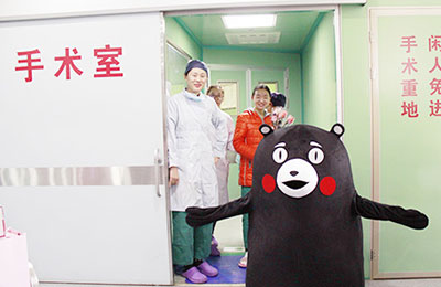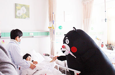 此次三八节,上海中大肿瘤医院采用熊本熊人偶作为此次活动的吉祥物,让很多患者以及家属们感到非常的亲切,呆萌的表情,笨拙的走姿,手中的鲜艳玫瑰,外加精美礼物,一时间成为医院“院宝”,医院病房四处里面洋溢着别样的温情。